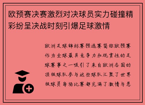 欧预赛决赛激烈对决球员实力碰撞精彩纷呈决战时刻引爆足球激情